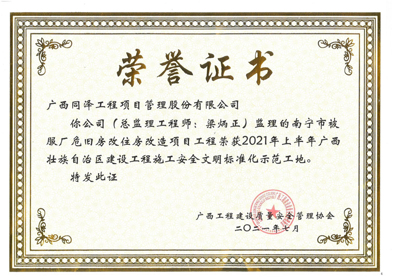 南宁市被服厂危旧房改住房改造项目荣获2021年度安全文明标准化工地