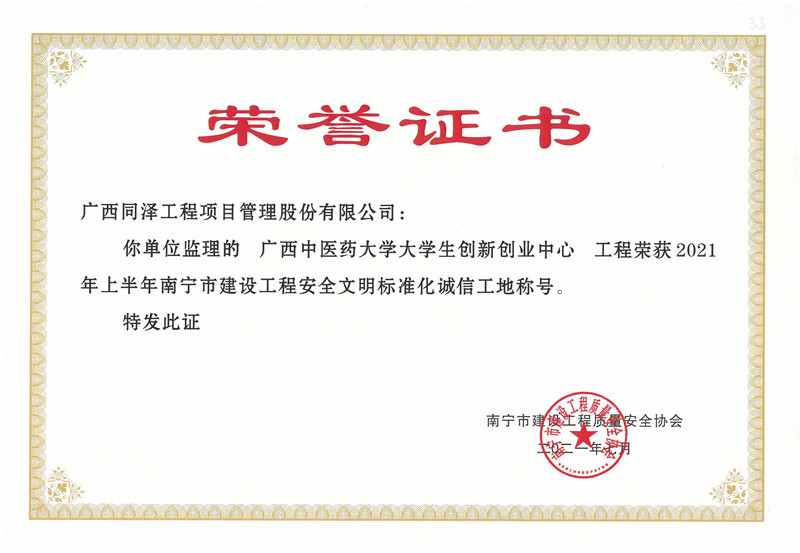 广西中医药大学实训楼项目、大学生创新创业中心项目荣获2021年度安全文明标准化工地