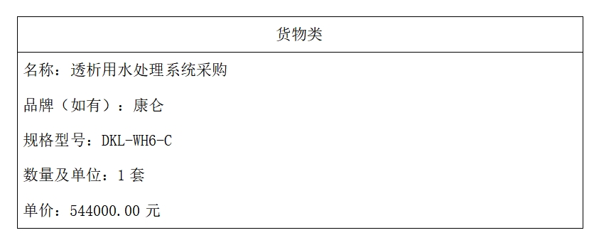 二、项目名称:透析用水处理系统采购