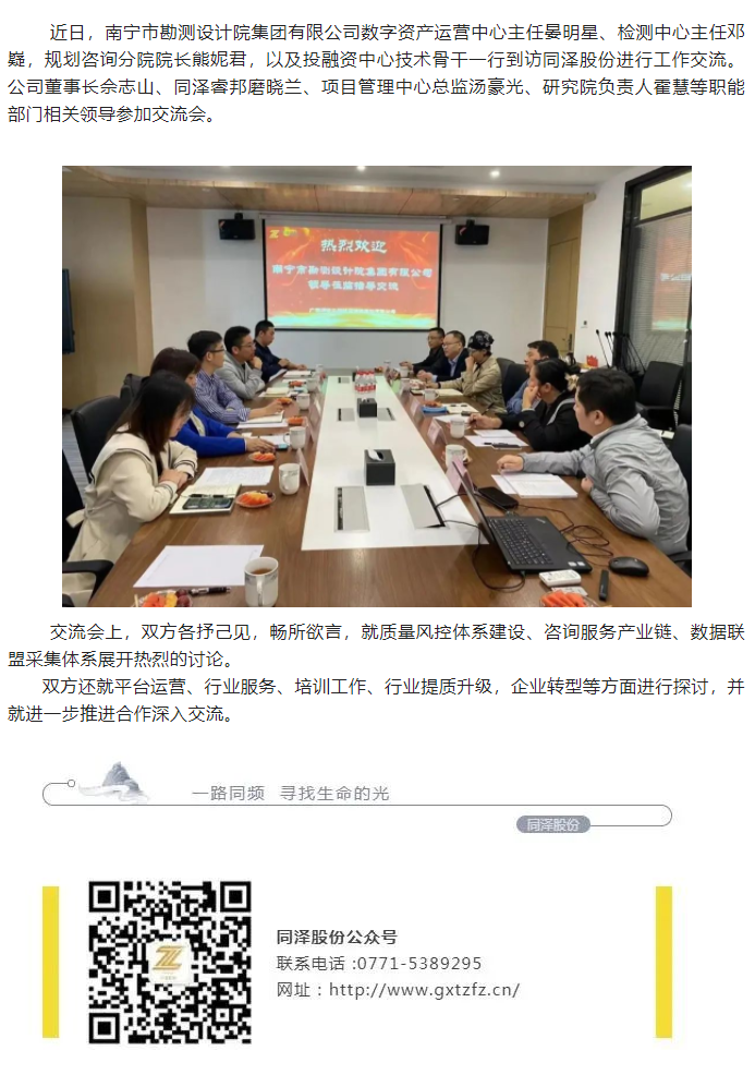 合作交流 | 南宁市勘测设计院集团有限公司到访同泽股份交流
