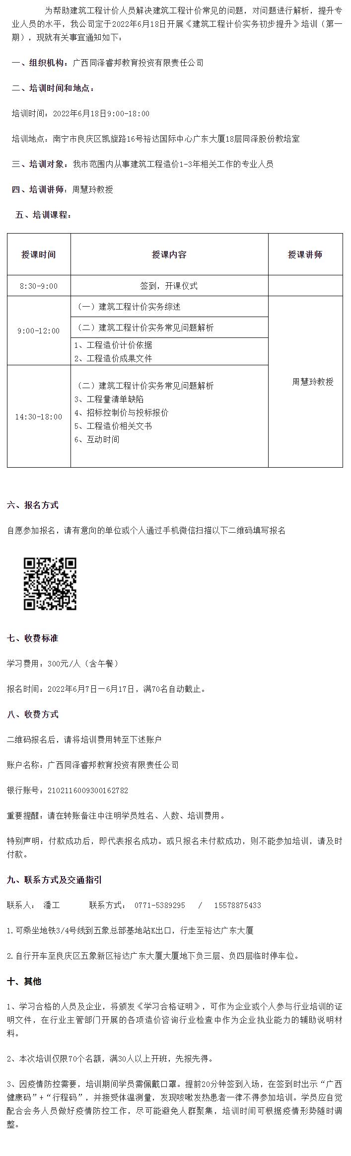 关于举办《建筑工程计价实务初步提升》培训班的通知
