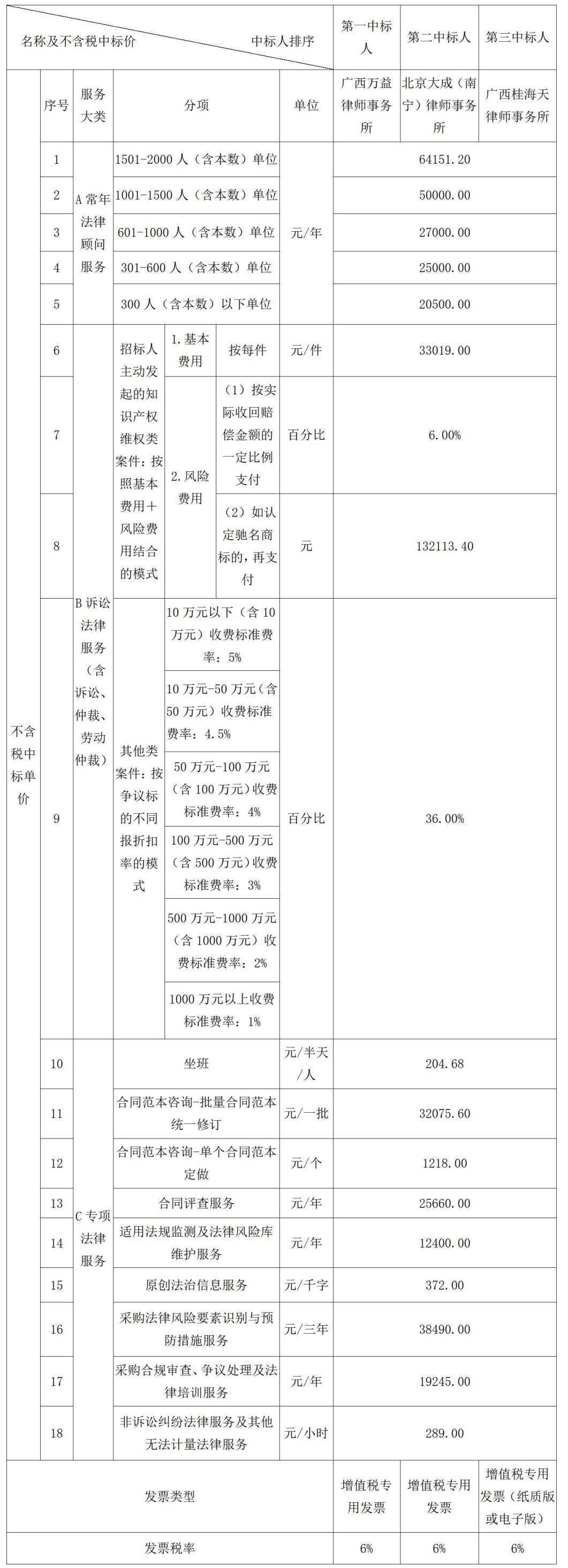 二、招标范围:此次招标为招定点供应商,本次招标中标人数量为3家。为招标人提供常年法律顾问服务、诉讼法律服务(含诉讼、仲裁)、专项法律服务。服务期限为3年,预计采购总金额约200余万元,具体结算金额以实际发生业务量为准。具体内容详见招标文件。
